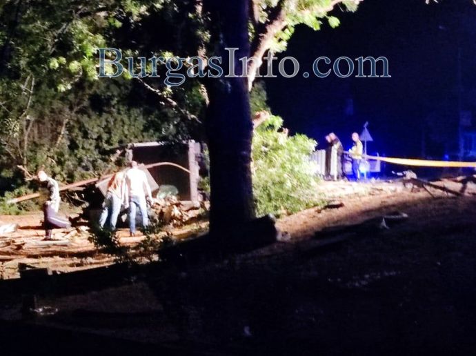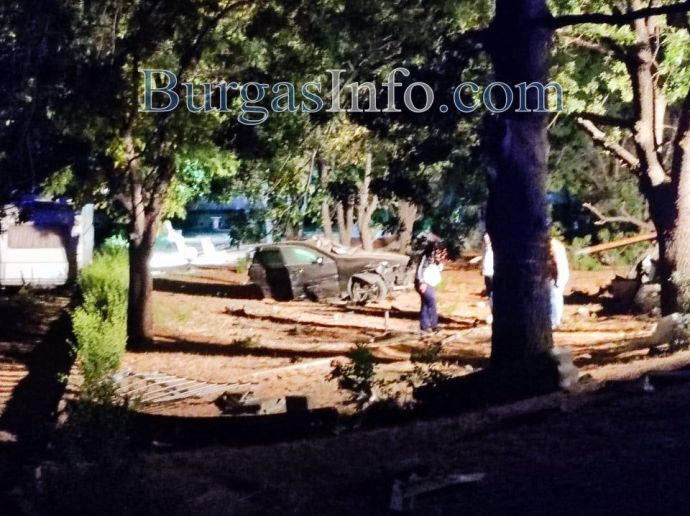 Лекият автомобил, изблъскан от тир, пълен със зърно в Айтос, буквално се е разцепил на две. Предницата на колата е останала на пътното платно на главното шосе, а основната част е паднала долу в парка, край пътя, където в този момент е имало разположени каравани за детско увеселение.