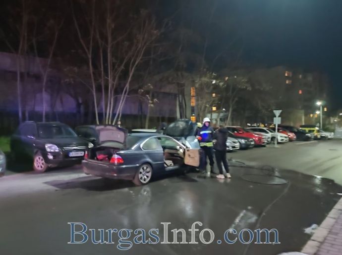 Лек автомобил БМВ пламна в района над магазин „Билла” в бургаския ж.к. „Изгрев” преди минути. Пламъците избухнали докато колата била в движение, а зад волана била млада бургазлийка. Съседи и собственици на търговски обекти в района изскочили веднага и започнали да гасят пламъците с пожарогасители. За броени минути на място са пристигнали екипи на полицията и пожарната. Според очевидци колата имала проблеми с маслото. Няма пострадали при инцидента.