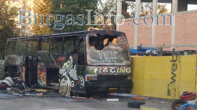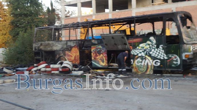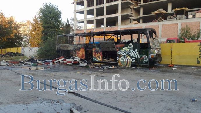 Автобусът, който пламна в бургаския ж.к. „Славейков“, е оставен за брак преди две години на мястото на бившата гумаджийница. Рейсът отдавна не е в движение, свалени са гумите му, а точно до него се намира оградата на новострояща се сграда. Вътре дворът е пълен с техника и строителни материали. „Можеше да стане голяма беля, ако пожарът беше се разрастнал към строежа“, казаха жители на района пред БургасИнфо.
