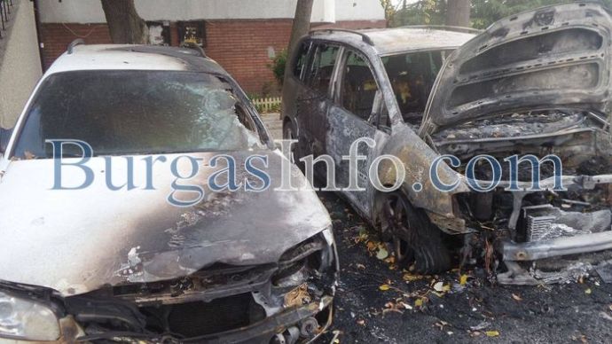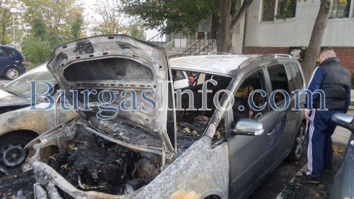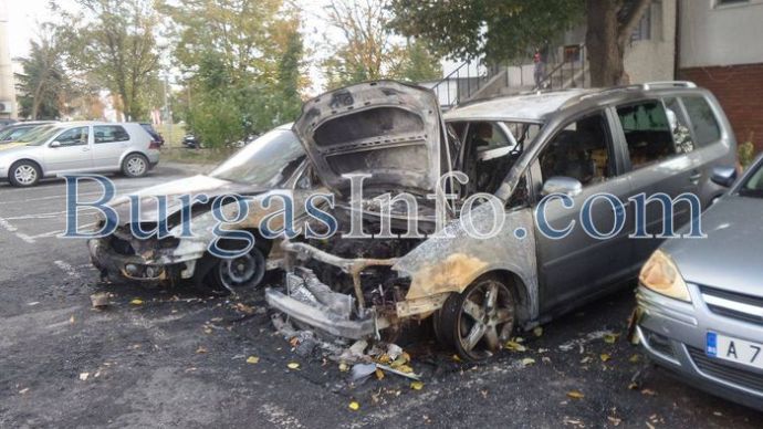 От огъня „Фолкваген”-ът е напълно изгорял, лекият автомобил „Опел” е с изгоряла предна част и запазена задница, а пламъците са стопили и фара на трета, паркирана в съседтво кола.![]()