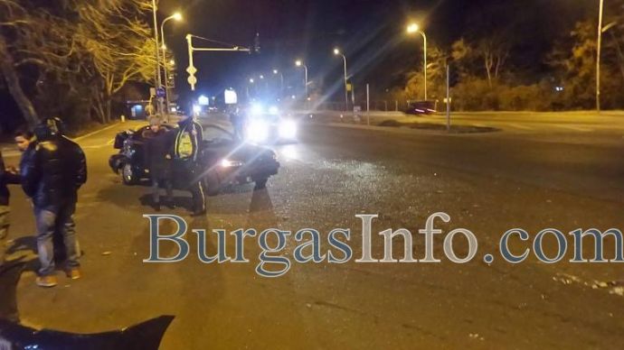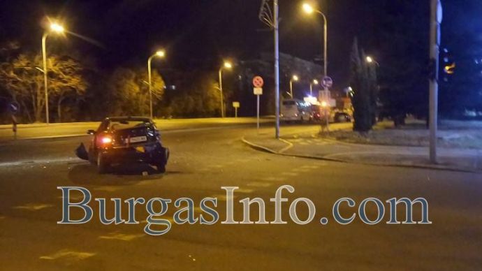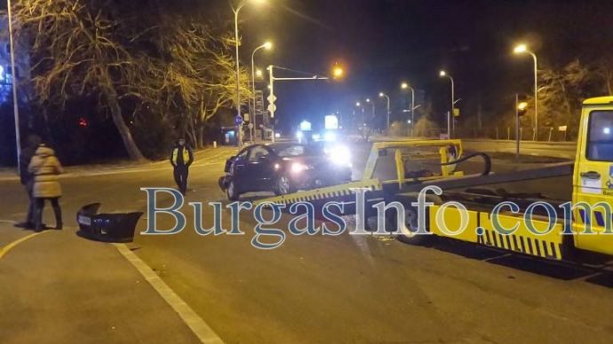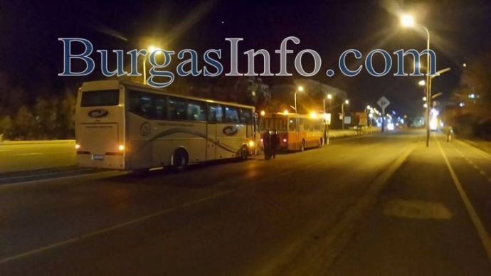 Автобус от София за Слънчев бряг на фирма „Юнион Ивкони” отнесе тази вечер лека кола „Опел” в Бургас. Инцидентът е станал, когато автобусът е влизал в морския град откъм София и е преминавал до магазин „Технополис” на бул. „Стефан Стамболов”. В този район има светофар, на който лекият автомобил е завивал към ж.к. „Славейков”, идвайки от центъра.