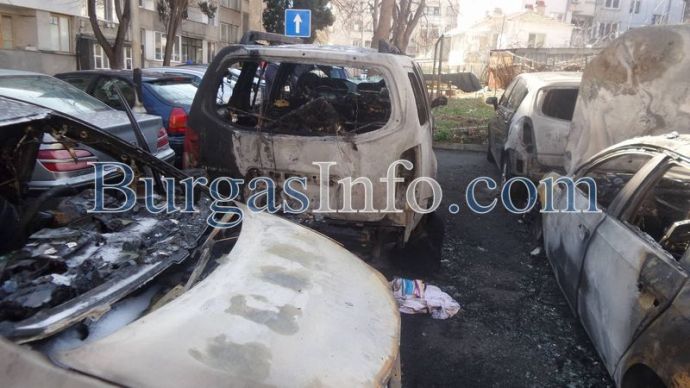 Лек автомобил "Фолксваген" е запалил останалите коли, паркирани пред блок 38 в ж.к. „Лазур“, Бургас. Колата е собственост на бургазлия, който живее на 8 етаж във вход 3. Съседи видели как първо неговият автомобил горял и предполагат, че палежът е умишлен. Собственикът на автомобила има частен бизнес.