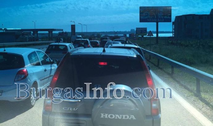 В района до кръговото преди Поморие се е образувало задръстване