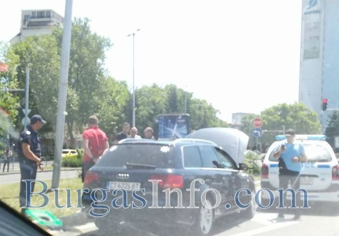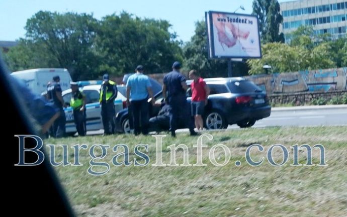 Полиция спря черно „Ауди” със старозагорска регистрация на булевард „Стефан Стамболов”, до светофара преди х-л „Космос”. Трима са задържани като по първоначална информация у тях са открити наркотици. Четири патрулки са обградили колата, като току-що пристигнаха и цивилни криминалисти. Задържаните също са на място.