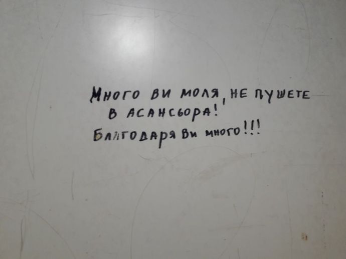 По ирония на съдбата в асансьора на вход А на бл. 96 има надпис: "Пушенето забранено".