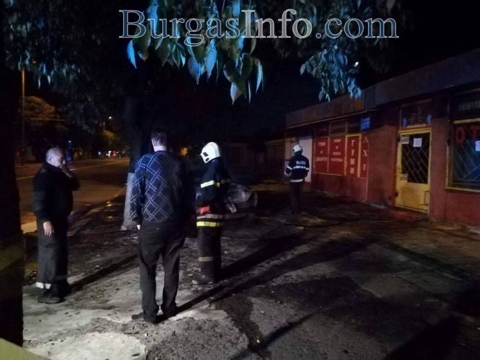 Лек автомобил, паркиран точно пред входа на завод „Метални изделия” в Бургас пламна тази вечер. Огънят току-що бе изгасен от противопожарен автомобил, който все още е на място, така че да няма никакъв риск от ново възпламеняване.