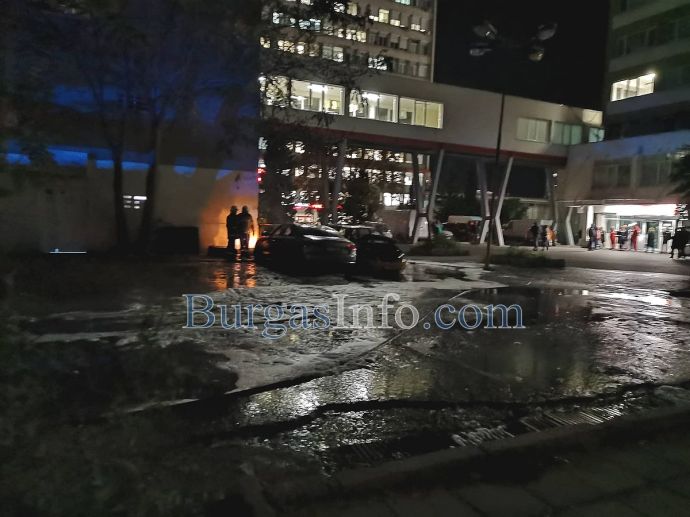 Пожарникари още гасят таксито, пламнало пред Спешния център, и паркирания до него автомобил.