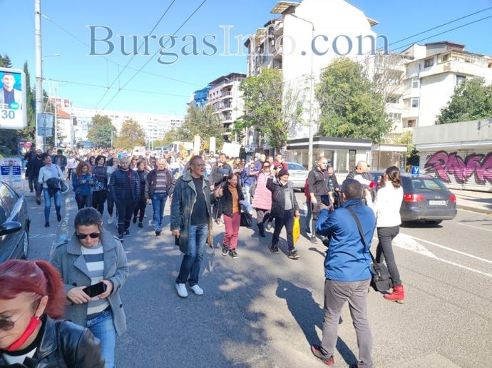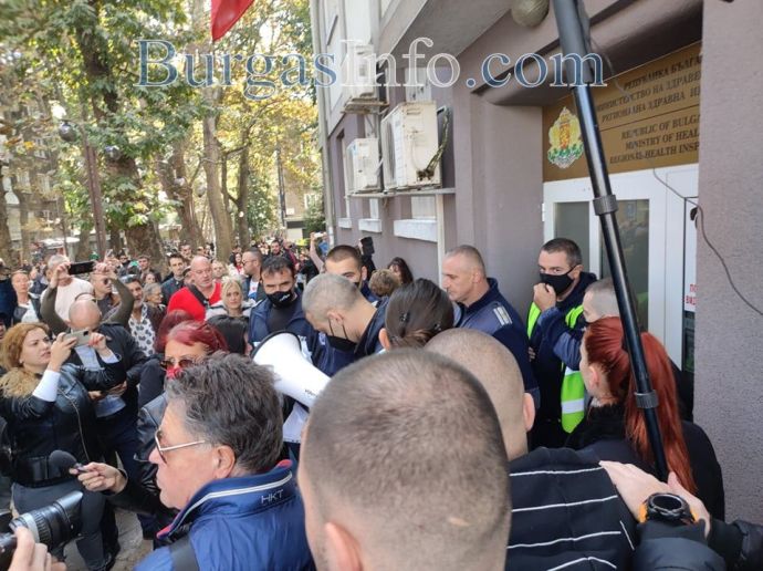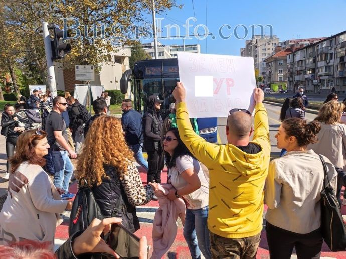 Протестиращи срещу новата заповед на здравния министър Стойчо Кацаров излязоха на пътното платно и блокираха възловия булевард, в района на централната автобусна спирка. Решението им беше изненадващо, след като преди това те настояваха да се срещнат с директора на РЗИ Бургас д-р Георги Паздеров.