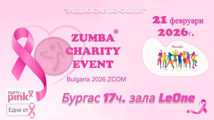 На 21 февруари 2026 г. Party in Pink™ Zumbathon® ще предложи зрелищен тричасов майсторски клас в София, Пловдив, Варна, Бургас, Благоевград, Карнобат, Стара Загора, Велико Търново, Горна Оряховица, Пазарджик, Приморско, Банско, Перник и Троян. С очакваните над 1000 участници, събитието има за цел да укрепи чувството за солидарност и споделена цел, показвайки подкрепата си към засегнатите от рак на гърдата и техните семейства. Събитието в Бургас стартира от 17 ч. в зала LeOne. През 2025 танцът с кауза обедини близо 1000 души в 13 града, а събраните дарения от над 21 000 лв. подпомогнаха програмите на фондация “Една от 8” в подкрепа на жените с рак на гърдата и на техните близки.