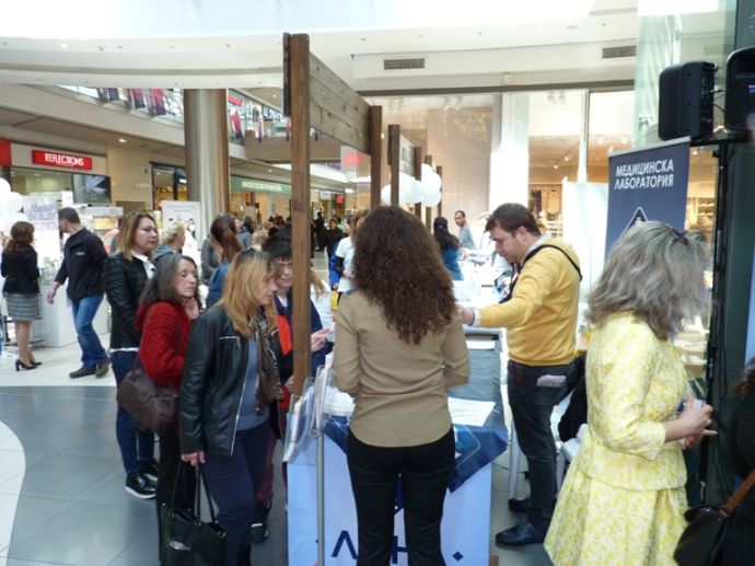 Безплатни консултации за това кои са най-подходящите изследвания преди и по време на бременност, при проблеми с щитовидната жлеза, хипертония, диабет, алергии и различни заболявания получиха над 400 посетители на щанда на медицинска лаборатория „ЛИНА”. Десет лекари, сред които специалисти по клинична лаборатория, микробиология, вирусология, паразитология, биология и цитохистопатология, даваха съвети в първия ден от изложението „Зона Здраве” в Мол „Галерия”-Бургас. Съвместно с Националната пациентска организация, „ЛИНА” извършва и безплатни изследвания за ХИВ/СПИН, които продължават и утре (9-ти април). Една от най-големите лаборатории в страната отново показа силно присъствие и освен консултации с лекари от всички лабораторни специалности, бе подготвила и много подаръци.