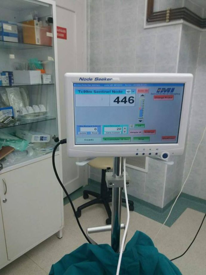 „По същество гама детекторната сонда за интраоперативно приложение представлява високо технологичен уред за регистрация на активност на изотопа 99 m Tc- наноколид, който се инжектира на пациента предоперативно и чрез нея да се идентифицира т.нар. сентинелен лимфен възел,този който е най-близо до тумора. Лимфният възел се отстранява и изпраща в хистологична лаборатория за експресно изследване-гефрир.