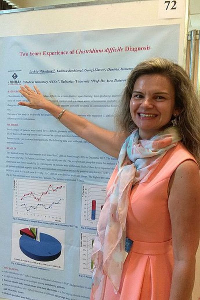Доц. Михайлова от една от най-големите лаборатории в България - „ЛИНА“, представи резултатите от работата на своя екип по проблема Клостридиум дифициле. В последните години значението на бактерията нараства, като се увеличава броят на инфекциите, предизвикани от нея. Клостридиум дифициле атакува храносмилателната система и води до диария, колит или псевдомембранозен колит. Затова откриването на бактерията при заразените е важно за адекватното провеждане на лечение.