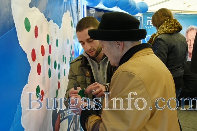На специално изработен винилен банер, с контурите на България, младежите от структурата на партията в Бургас събраха стотици послания под мотото „Аз обичам България….” Върху цветни листчета в бяло, зелено и червено всеки гражданин можеше с няколко думи да изрази своето родолюбие. Инициативата беше в подкрепа на кандидатите за президент и вицепрезидент Цецка Цачева и вицеадмирал Пламен Манушев. То има за цел да активизира гражданите и най-вече да поощри избирателната активност на младите хора.
