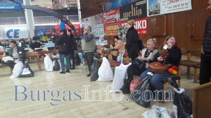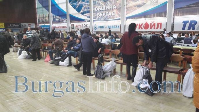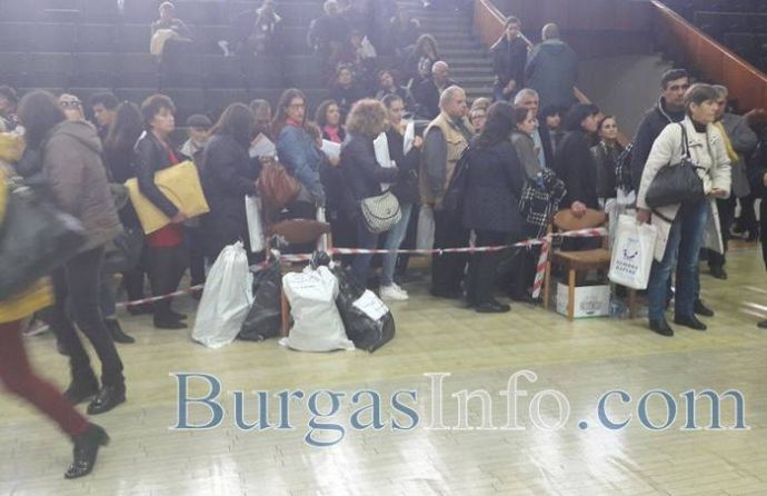 „Дрогирахме се с кафета, за да издържим. Напливът беше посред нощ, сега се вижда вече финалът, макар че ние влязохме в залата едва в 6,30 и има още 40 секции пред нас“, коментира председател на СИК пред БургасИНФО. Според хората проблемът идва от обработката на резултатите от референдума, тъй като много членове на секции са допуснали грешки, които РИК отстранява. „Комисията работи абсолютно професионално и бързо, просто членовете на СИК много често са там за пълнеж и не могат правилно да отчетат резултатите“, ядосваха се чакащи пред залата.