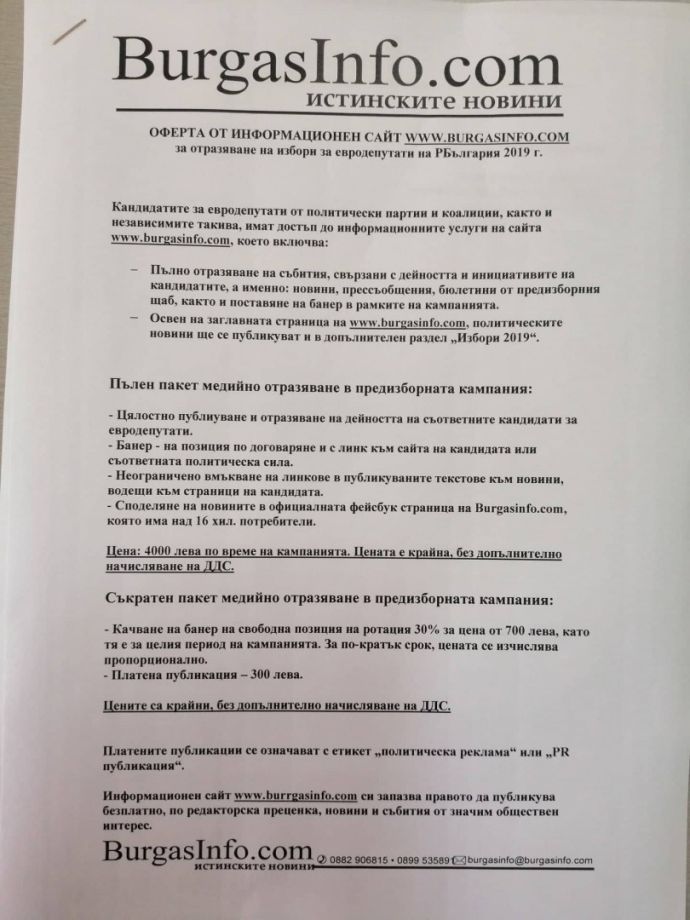 Рекламна оферта - burgasinfo.com