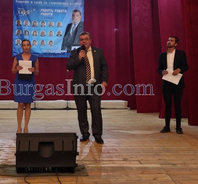 „В кабинета ми през тези четири години зад мен стоеше портретът на Васил Левски, на който са изписани думите: „Работа трябва, а не приказки”. Винаги съм се стремял да следвам това правило. И сега мога да заявя пред Вас - имаме воля, имаме амбиции и имаме хъс да направим още много за Камено в следващите четири години”. С тези думи кандидатът за втори мандат за кмет на общината Жельо Вардунски се обърна към жителите на Камено в пълната зала на обновения Културен дом. Сред гостите беше и депутатът от ГЕРБ Димитър Бойчев, който е и областен лидер на партията.![]()