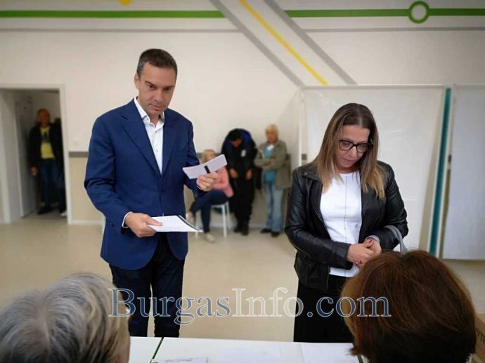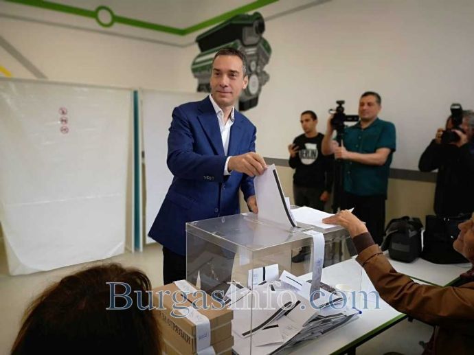 „Времето е прекрасно, призовавам бургазлии да излязат и да гласуват”, призова Николов, който дойде в обновената Професионална гимназия по транспорт със съпругата си Гергана Николова.