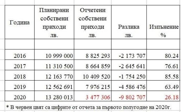 „Ако на кмета лесно му ставаше неудобно, щеше да се притесни, че по време на предизборната 2019г. не е оправдал очакванията на хората с близо 4,6 млн. лв. От таблицата се вижда, че това е негова редовна практика, но в такъв размер не беше се излагал. През последните пет години само един път собствените приходи на община Царево са надхвърляли 9млн. лв., но това не пречи на кмета всяка година да залага в проекто бюджетите приходи в размер на минимум 11 млн. лв., а от тази година вече и над 13 млн. лв.! И после да започне да обещава, да обещава, да обещава! Както само той си може! А когато дойде време за отчет – свикаме заседание на Общинския съвет от днес за утре и в прессъобщението за него пишем, че..ще строим ново училище!“, коментира Емил Пейчев.![]()