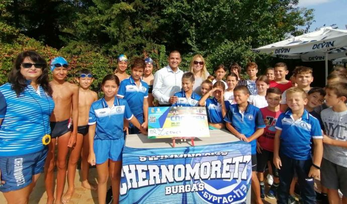 Талантливият плувец води и открит урок по плуване за деца от ПК "Черноморец", ПК "Бриз", ПК "Метропол", ПК "Акулите", ПК "Започни да плуваш", КВС "Бургас" и ПК "Нефтохимик".