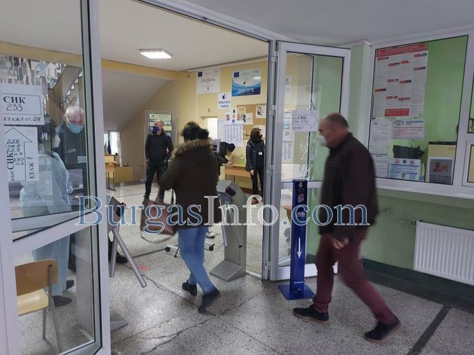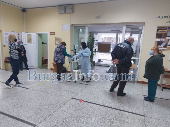 Термометър, дезинфектант и маски посрещат избирателите на входовете на учебните заведения, в които са разположени избрателните секции в Бургас днес. Служебни лица ориентират бургазлии откъде да минат до съответната секция, за да не се смесват потоците. Входовете и изходите са отделени. Пред самите избирателни секции също има дезинфектанти, както и върху бюрата, на които се намират машините. Гласуването на устройствата става изключително бързо, като има техническо лице, което упътва избирателя как да подаде вота си.![]()