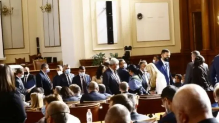 Междувременно, след като постоя известно време прав до трибуната, министърът на финансите в оставка Кирил Ананиев, ошашавен от случващото се, гневен напусна залата.