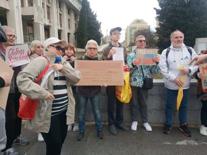 „Сводоба за Навални“, „Против война с Украйна“, „Затвор за убиец, а не за невинни хора“ - това бяха част от плакатите, издигнати от руски емигранти, които излязоха на митинг в центъра на Бургас днес. На площад „Тройката“ се събраха около 50 души, които живеят в Бургас или имат ваканционни имоти по Черноморието.