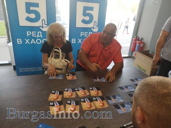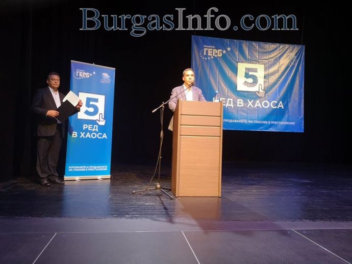 "Това ще са първите частни избори, проведени в България от частници. Христо Иванов казва, че ще са честни избори, но как? Шарков пипа машините, пипа кодовете. Как може на частници да възложиш да проведат изборите? Кога докараха машините, кой ги сертифицира. Аз нямам никакво доверие. Но всички партии си мълчат, защото това е срещу нас. Ако не преброят квитанциите, това означава пладнешки грабеж, другарьо Христо Иванов, и спри да ми обясняваш кога да напусна българската политика! Аз никога не съм клечал в твоя кабинет, нито веднъж не дойдох в правосъдието при теб. Дръжте се нормално, като си знаете историята, аз не искам нищо от вас.” Това заяви в Бургас лидерът на ГЕРБ Бойко Борисов. Той беше посрещнат в пълната зала на Дома на нефтохимика и около половин час раздаваше автографи. С него бяха и евродепутатът Асим Адемов, зам.-председателят на партията Даниел Митов. Посрещнаха ги кметът на Бургас Димитър Николов и водачът на листата на коалиция ГЕРБ-СДС Любен Дилов, както и всички кандидат-депутати. В залата бяха и кметовете на ГЕРБ от общините от Бургаска област.
