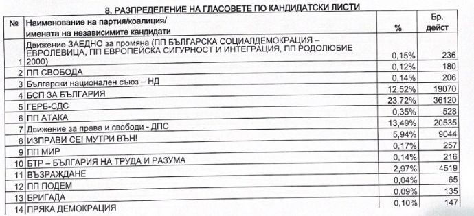 ЕТО РЕЗУЛТАТИТЕ НА ПАРТИИТЕ, СПОРЕД ПРОТОКОЛА НА РАЙОННАТА ИЗБИРАТЕЛНА КОМИСИЯ В БУРГАС: