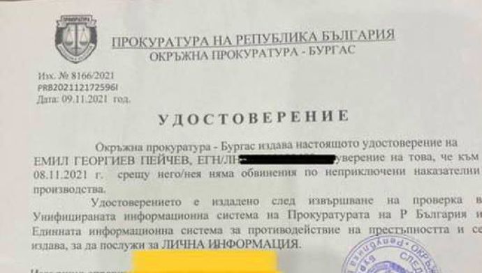 Тези хора са напълно жалки. За да не бъда голословен, прилагам свидетелство за съдимост и удостоверение от Следствена служба, че срещу мен не се водят дела и преписки.