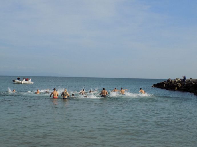 В Поморие, Светият кръст беше хвърлен на две места. В центъра, най-бърз беше помориецът Илиян Христов, на 32 години, сред още 22-ма смелчаци. Наравно с мъжете, в студеното море влезе и 10-годишният Щерион Дайлов, който заслужено спечели аплодисментите на присъстващите.