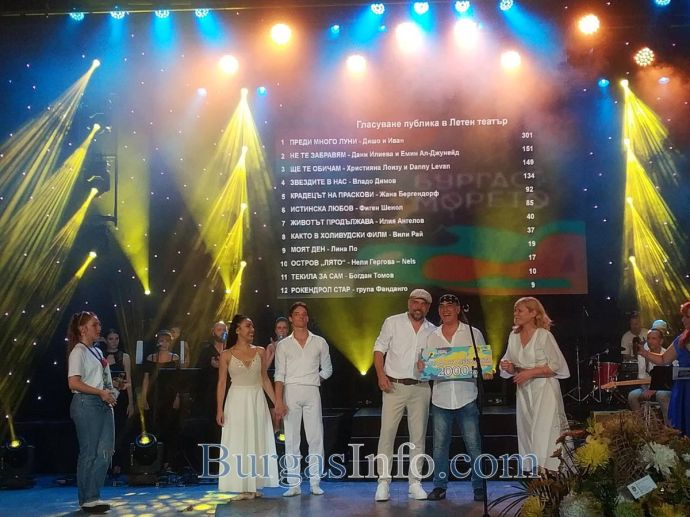 Летният театър тази вечер буквално се пукаше по шевовете за тазгодишното издание на „Бургас и морето”. Победител стана песента „Не те забравям” в изпълнение на Дани Илиева и Емин Ал-Джунейд по музика и аранжимент на Ефтим Чакъров и текст на Красимир Трифонов. Тя спечели както гласовете на журито, така и онлайн гласуването. Тя бе отличена и за най-добър текст от вестник „Черноморски фар“, който от 2014 година връчва награда за текст. Текстописецът Красимир Трифонов благодари за отличието, което му бе връчено от главния редактор на изданието Силвия Шатърова и на публиката, като каза, че текстът е по-скоро поезия, отколкото само текст.