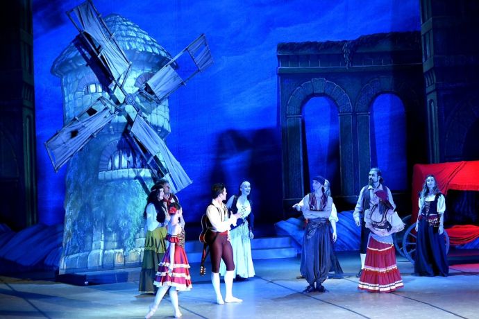 В красивата динамична постановка на „Дон Кихот“ традиционно високо изпълнителско ниво, отдаденост на сцената и забележителен синхрон постигат и артистите от ансамбъла на балета към Държавна опера – Бургас