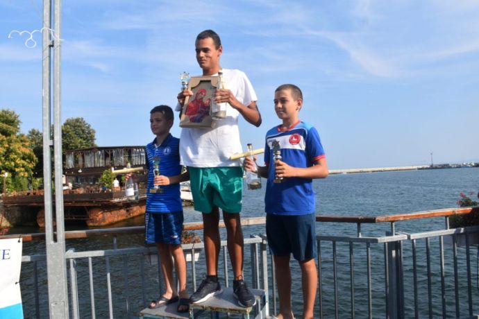 66-годишният Тодор Костакиев от Поморие грабна приза за най-възрастен участник с резултат: 00:28 за 1 километър и 01:00:34 за 2 километра. Наградите бяха връчени от кмета на община Поморие Иван Алексиев. Той поднесе отличията и на победителите в категориите Мъже и Жени. Участниците с физически затруднения (хора в неравностойно положение) бяха отличени от председателя на Общински съвет – Поморие Адам Адамов, а първенците при Момичета и Момчета – от директора на дирекция „Хуманитарни дейности“ Антон Лалев.