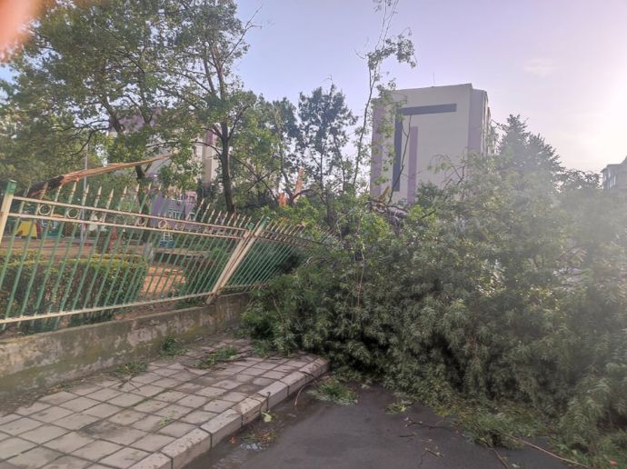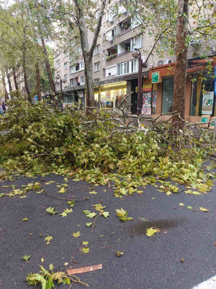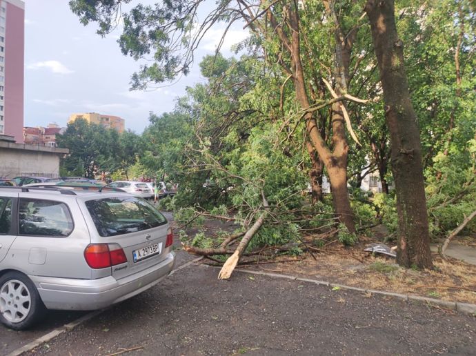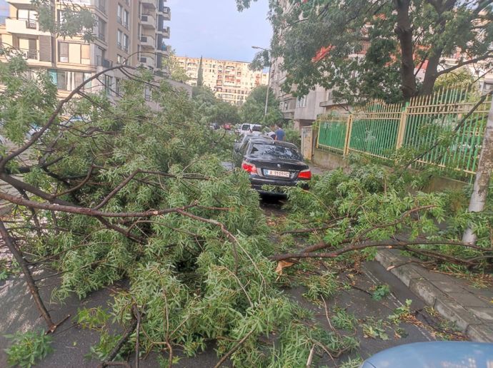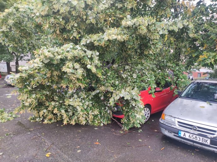 Десетки са затиснатите коли в к-с „Славейков“ от изкоренени дървета и огромни пречупени клони. В двора на детска градина „Райна Княгиня“ огромните стебла са изкъртили оградата. На бл. 55 в е паднала част от изолацията. Излетели прозорци и счупени стъкла има във всички райони на града.
