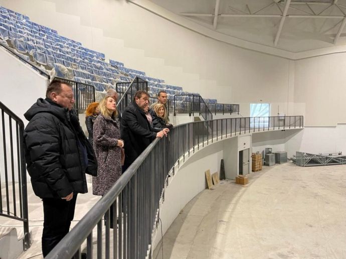 Министърът на регионалното развитие и благоустройството арх. Иван Шишков, заместник - министърът на спорта Петър Георгиев и арх. Деляна Панайотова - и.д. началник на Дирекцията за национален строителен контрол направиха днес инспекция на зала „Арена Бургас“.
