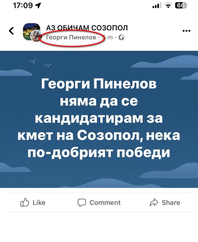 Председателят на Общинския съвет в Созопол Георги Пинелов е обект на атака от тролове от известно време насам. Чашата преля, когато фалшив профил с неговото име, но изписан на кирилица „Георги Пинелов“, публикува в една от созополските групи, че няма да се кандидатира за кмет. По това ясно личи, че макар местните избори още да са твърде далеч, в морската община напрежението расте. „Още през 2019 година казах на сегашния кмет, че след четири години пак ще се кандидатирам. Бил съм откровен. Никога не съм казвал, че ще бъда кандидат на Продължаваме промяната. Имам достатъчно добри познати в много парламентарно представени и не представени в НС политически сили... Ще се кандидатирам за кмет, но нямам болни амбиции. Имам си прекрасно семейство, не съм се облагодетелствал с нищо, мога да кажа, че съм от стабилно финансово семейство и не бих се продал.“, каза Георги Пинелов пред БургасИНФО. Той смята, че в момента нападките срещу него, е възможно да идват и от двете страни на политическото пространство в морската община.