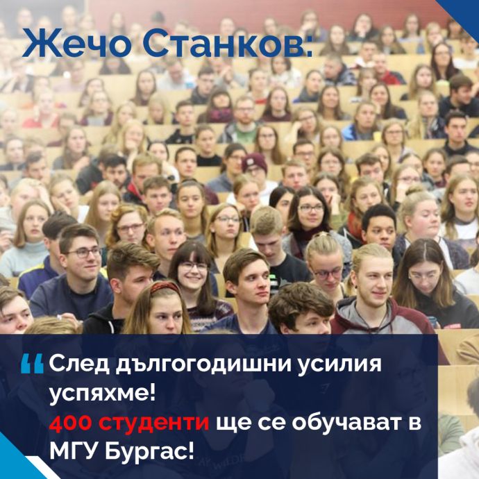 да отглеждат децата си тук. Затова 2 години води битка за разкриване на филиал на Минно-геоложкия университет тук. Предстои усилена работа и за филиал на престижния Университет по хранителни технологии-Пловдив, което ще даде възможност не само за привличането на интелигентни млади хора в Бургас, но ще бъде в интерес на туризма с подготовката на квалифицирани кадри.