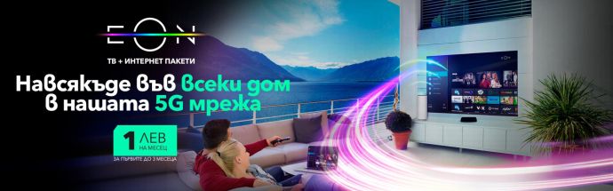 Това е възможно благодарение на 5G мрежата на Vivacom – най-голямата в страната и разнообразието на ТВ пакетите EON - LIGHT, FULL и PREMIUM. Чрез комбинацията от високоскоростния 5G HOME INTERNET и ексклузивната телевизия EON, клиентите ще получат невероятно мултимедийно изживяване в Ultra HD качество, възможност за връщане на съдържание 7 дни назад, видеотека с повече от 15 000 заглавия, уникална възможност за създаване на детски профили, спортен режим и много други, дори и в райони без достъп до фиксираната мрежа на Vivacom.
