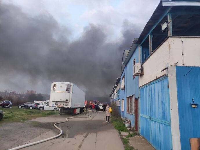 Все още тук се извисяват гъсти пушеци черен дим. Към този момент няма данни за пострадали хора, щетите тепърва ще се установяват.
