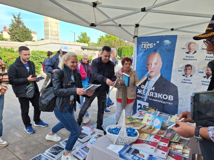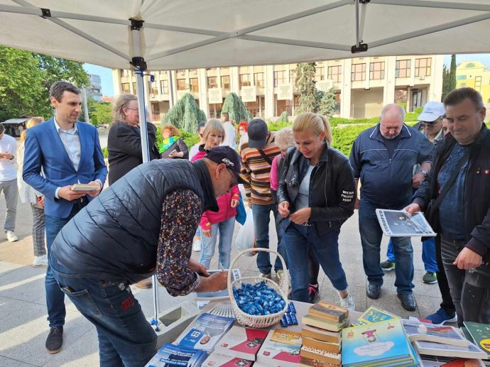 Кандидат-депутатите от ГЕРБ-СДС в Бургас направиха ротация, но с книги, която се състоя в центъра на града. На площад „Тройката“ бургазлии дойдоха, за да донесат книга и да си вземат у дома такава, която все още не са чели.