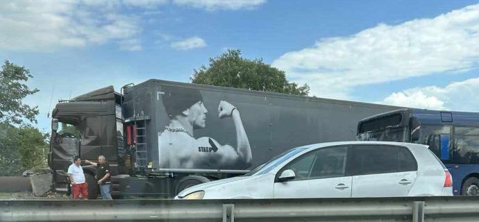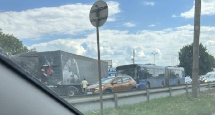 Тир се удари в градски автобус В1, пътуващ от ж.к. "Меден рудник" към центъра на Бургас преди минути. Товарният камион е излизал от ул. "Вая" към бул. "Тодор Александров", където в бус лентата се е движил автобусът. След удара една от пътничките в задната част на рейса се е оплакала, че се е ударила леко в намиращата се пред нея седалка, а шофьорът на тира - от болки в ръката.