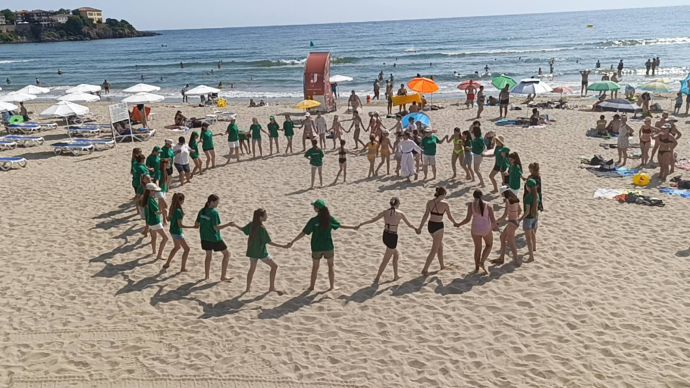 "Най-дългото хоро на Музите“ се изви на централния плаж в Созопол. По програмата на международния младежки фестивал „Музите“ това беше уоркшоп с Мария Банкова – хореограф, преподавател по народни танци.
