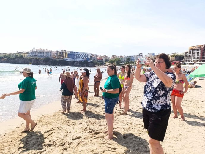 След това хорото се пренесе до водата и ставаше все по-трудно. Това обаче привлече много чуждестранни летовници, които се възхищаваха на красотата на българския фолклор. Част от тях снимаха, а по-смелите се включиха, изучавайки танца в движение. Накрая всички бяха доволни от изненадващото плажно забавление, а танцьорите получиха много аплодисменти.