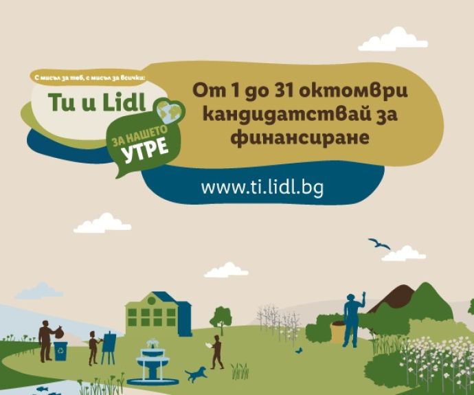 Лидл България обяви старта на седмото издание на най-голямата си социално отговорна инициатива „Ти и Lidl за нашето утре“. От 1 до 31 октомври неправителствени организации, сдружения, фондации, организации с нестопанска цел, читалища, училищни настоятелства, младежи, журналисти и регионални медии могат да подават своите проектни идеи, с които да допринесат за по-качествен и пълноценен начин на живот на местните общности в цялата страна.