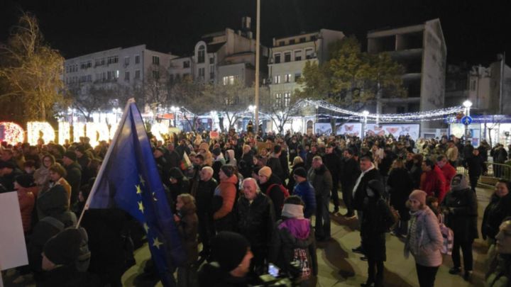 Пореден протест в Бургас се провежда тази вечер на площад „Атанас Сиреков“ в центъра на града. От обявения начален час 18 до 18,40 се събраха хора, далеч по-малко от многолюдния протест на 10 декември, чиято численост беше внушителна на фона на демонстрациите, провеждани през последните години в морския град.