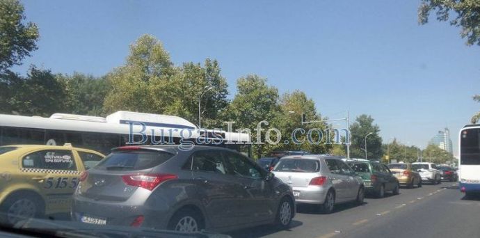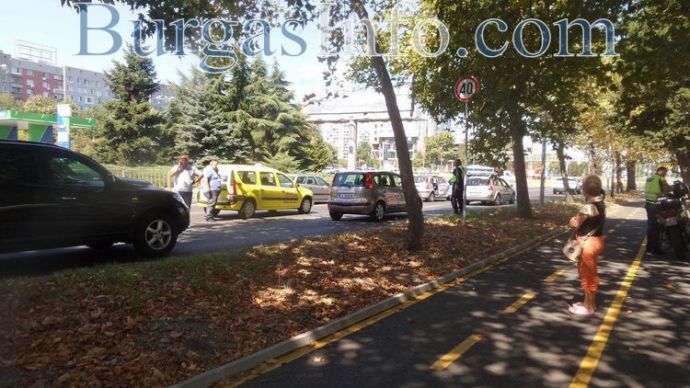 Верижна катастрофа между лек автомобил „Ситроен”, такси на "Инди кар" и джип "Тойота" блокира централния булевард „Стефан Стамболов” в участъка край УМБАЛ – Бургас. Задръстването е и в трите ленти, колите бувално пъплят. Инцидентът е станал в най-дясната лента, в посока София.