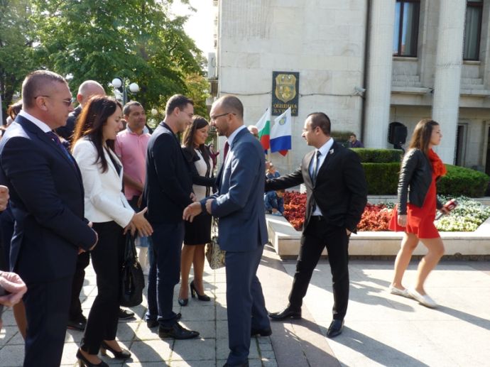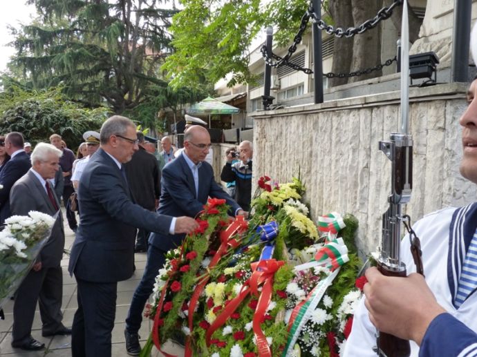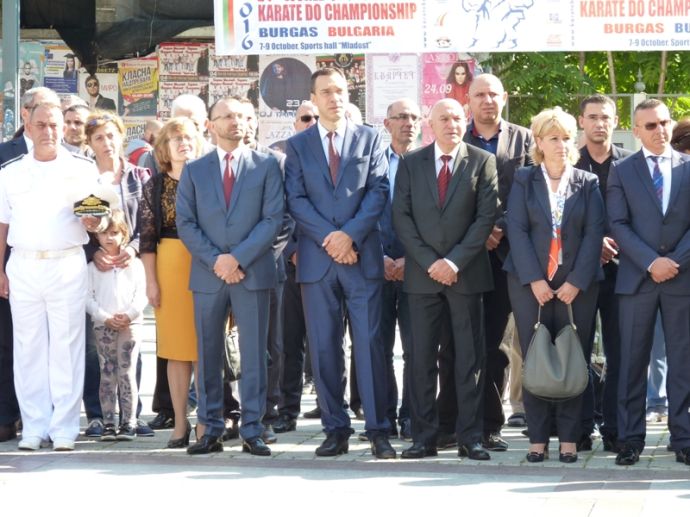 На церемонията присъстваха кметът Димитър Николов, зам.-кметът Йорданка Ананиева, областният управител Вълчо Чолаков, заместничката му Севдалина Турманова, народните представители Диана Йорданова, Димитър Бойчев, Атанас Зафиров, председателят на ОБС - Бургас Костантин Луков, общинските съветници от Реформаторския блок Тошко Иванов, д-р Георги Митев, който е и директор на Регионалната Агенцция по безопасност на храните, Живко Табаков, колегите им от ГЕРБ – Калояна Живкова, Антон Берданков, Галя Василева, от БСП – Евгений Мосинов, Николай Тишев и др. Всички те положиха цветя пред Паметника на 24-ти Черноморски пехотен полк.