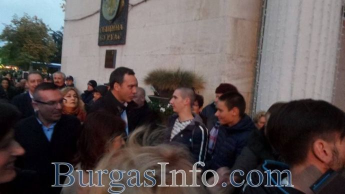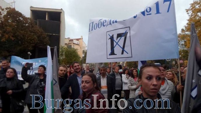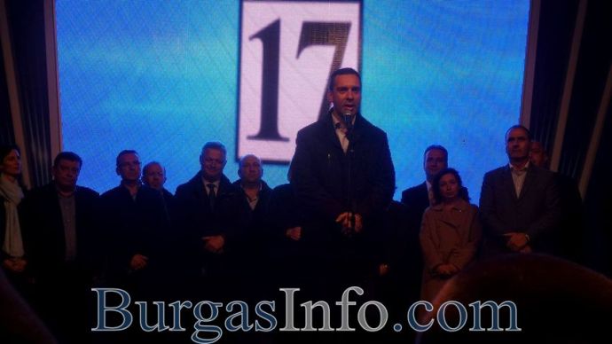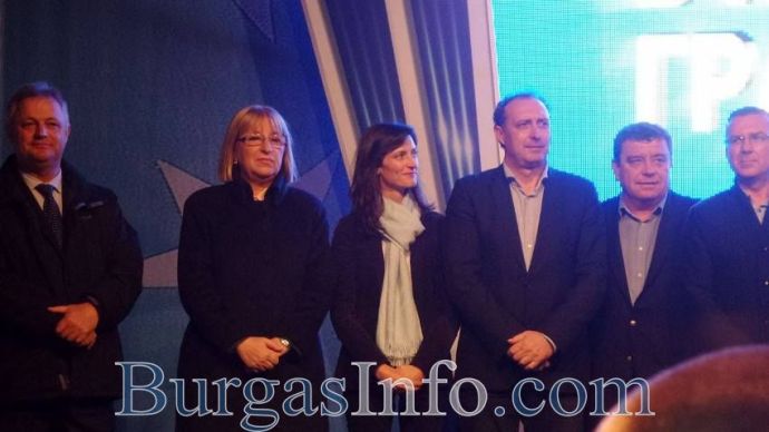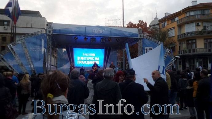 Бургазлии излязоха тази вечер, за да дадат своята подкрепа за кандидат-президентската двойка на ГЕРБ Цецка Цачева и Пламен Манушев, за победата им още на първи тур на предстоящите избори. Знамена и скандирания „Победа” посрещнаха Цачева и Манушев, които бяха придружени от председателя на Националния предизборен щаб Цветан Цветанов, кметът на Бургас и зам.-председател на ГЕРБ Димитър Николов, бургаските депутати Дияна Йорданова, Румен Желев, Иван Вълков и Димитър Бойчев, който е и областен лидер на ГЕРБ. Сред бургазлии беше и целият печеливш отбор на ГЕРБ в Бургаска област: кметовете на: Поморие - Иван Алексиев, Созопол - Панайот Рейзи, Приморско - Димитър Германов, Малко Търново - Илиян Янчев, Царево - Георги Лапчев, Камено - Жельо Вардунски, Средец - Иван Жабов и на Айтос - Васил Едрев.