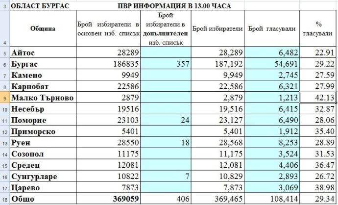 Най-ниска засега е активността в община Айтос – 22,91%.