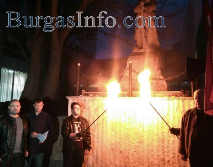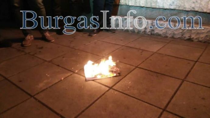 Копие на Ньойския договор пламна тази вечер пред паметника пред Военния клуб в Бургас. Така символично ВМРО отбеляза 97 години от подписването му, с което са орязани огромни части от територията на България.